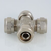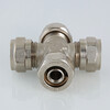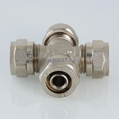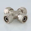 Фитинг обжимной крестовина для присоединения металлополимерных (металлопластиковых) трубопроводов. Предлагаются как равнопроходные модели, так и крестовины с разными диаметрами присоединяемых трубопроводов.