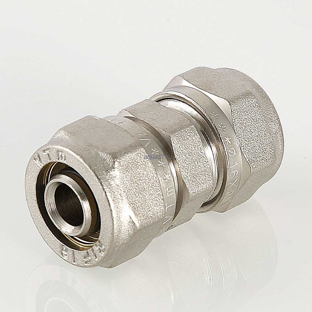 Прямой латунный никелированный фитинг для соединения металлополимерных труб. Имеются равнопроходные модели и модели с переходом на другой диаметр.