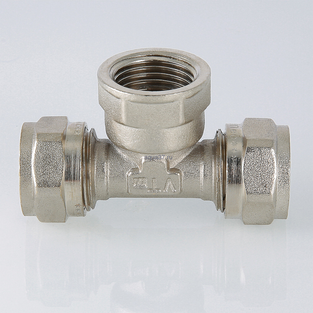 Фитинг обжимной – тройник с переходом на внутреннюю резьбу для металлополимерных (металлопластиковых) труб. Резьба фитинга – внутренняя трубная по ГОСТу 6357.