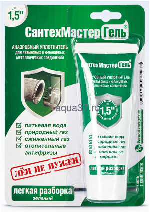 Анаэробный герметик «СантехМастерГель» предназначен для монтажа металлических резьбовых и фланцевых соединений. Образует высокопрочное уплотнение, устойчивое к различным средам: вода, природный и сжиженный газ, бензин, отопительные антифризы и др.