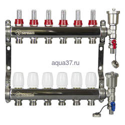 Коллекторный блок с расходомерами 6 выходов нержавейка Valtec