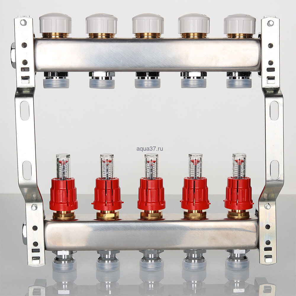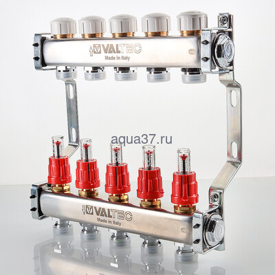 Коллекторный блок с расходомерами 4 выхода нержавейка Valtec