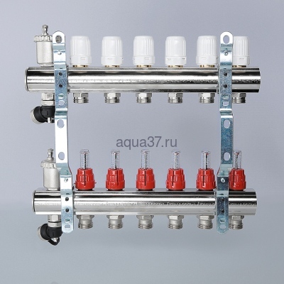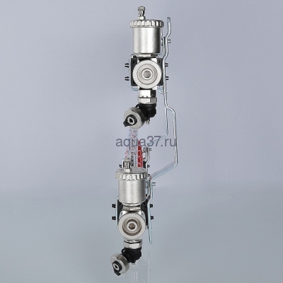 На выходах прямого коллектора установлены настроечные клапаны с расходомерами, обратный коллектор оснащен термостатическими клапанами (ручные, с возможностью оборудования сервоприводами).