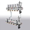 Коллекторный блок для систем водяного радиаторного и напольного отопления (водяной теплый пол) с настроечными (ручными балансировочными) и термостатическими (с возможностью установки электротермического сервопривода) клапанами, автоматическими воздухоотводчиками и дренажем.