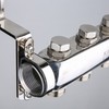 Коллекторный блок из нержавеющей стали служит для распределения потоков по контурам теплого пола, радиаторного отопления, прочих климатических систем, где в качестве теплоносителя используется вода либо незамерзающие растворы гликоля с максимальной рабочей температурой 90 °С, рабочим давлением до 9 бар.