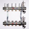 Коллекторный блок для систем водяного радиаторного и напольного отопления (водяной теплый пол) с настроечными (ручными балансировочными) и термостатическими (с возможностью установки электротермического сервопривода) клапанами, автоматическими воздухоотводчиками и дренажем.