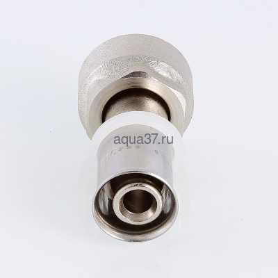 Латунный никелированный пресс-фитинг с переходом на резьбовое соединение с помощью накидной гайки. Предназначен для подключения металлопластиковой трубы или полиэтиленовой трубы размером 16 х 2,0 мм к коллекторам, коллекторным блокам, радиаторным клапанам и узлам, имеющим выходы стандарта «евроконус» 3/4". Уплотнение штуцера со стороны накидной гайки – с помощью двух колец из синтетического каучука EPDM. Рассчитан на применение в системах с максимальной рабочей температурой 110 °C и давлением до 10 бар.