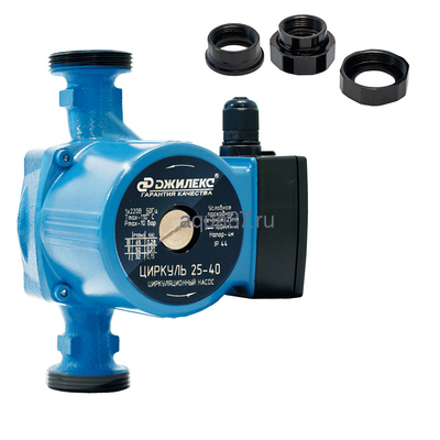 Циркуляционный насос Джилекс Циркуль 25/40 предназначен для циркуляции воды или теплоносителя в системах отопления с присоединительным размером гайки 1 дюйм (25 мм) и максимальным напором 4 метра (40 дм).