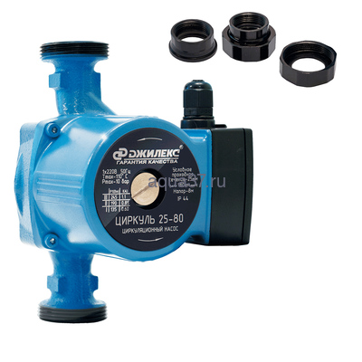 Циркуляционный насос Джилекс Циркуль 25/80 предназначен для циркуляции воды или теплоносителя в системах отопления с присоединительным размером гайки 1 дюйм (25 мм) и максимальным напором 8 метров (80 дм).