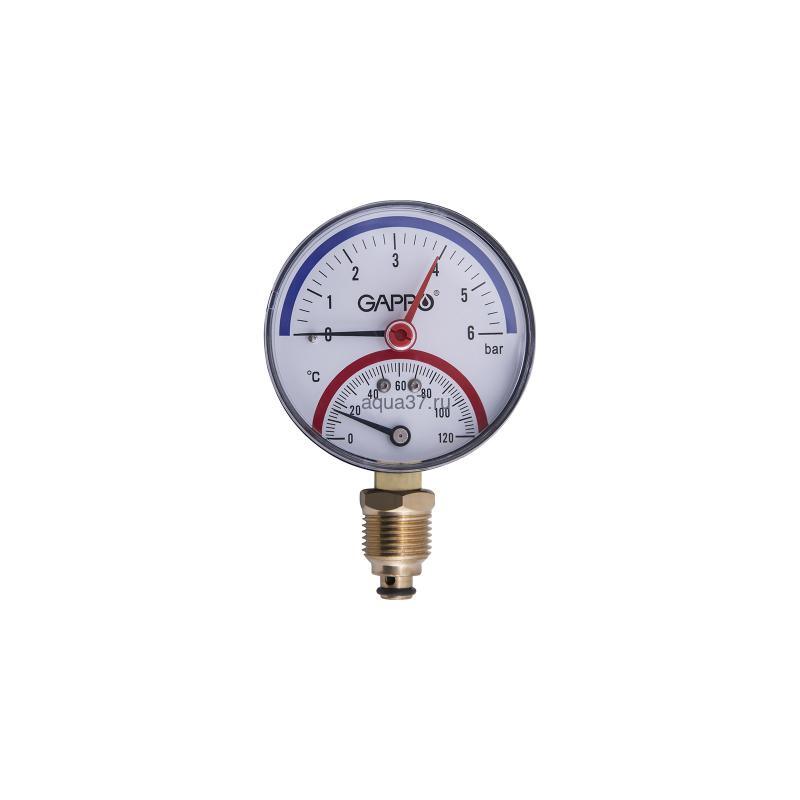 Термоманометр GAPPO G1472 Dy 80 с нижним подключением 1/2", 6 бар 0-120*