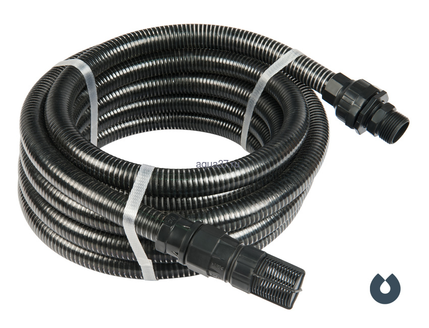 Шланги армированы пластиковой спиралью. На одном конце шланга - съемный обратный клапан с сетчатым фильтром, на другом конце - разборный соединительный фитинг для соединения с насосом.
