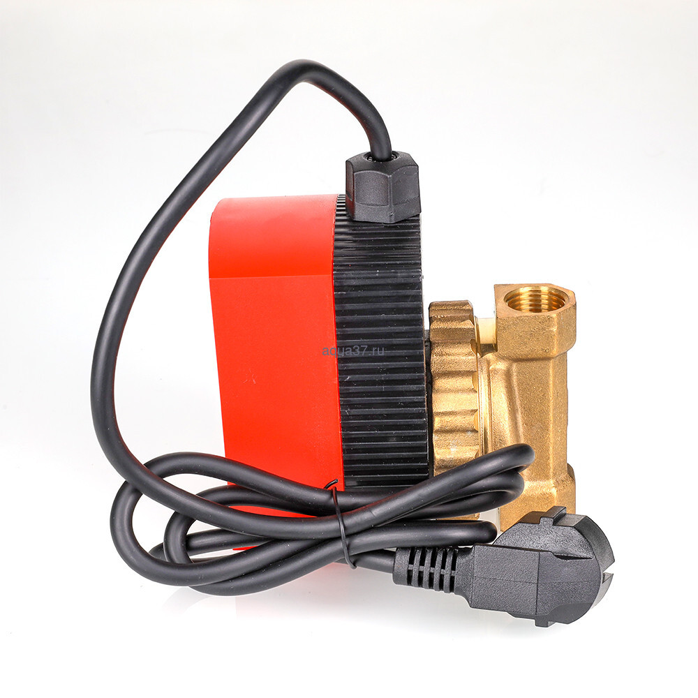 Напряжение питание насоса – 220 В (50 Гц), максимальное статическое давление – 10 бар, интервал температур воды 0–95 °C, присоединительная резьба – внутренняя, 1/2″.