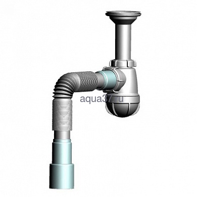 Сифон для мойки 1 1/2" x 40 малый с удлинённой горловиной с гибкой трубой 40 x 40/50 S0515 Аквант