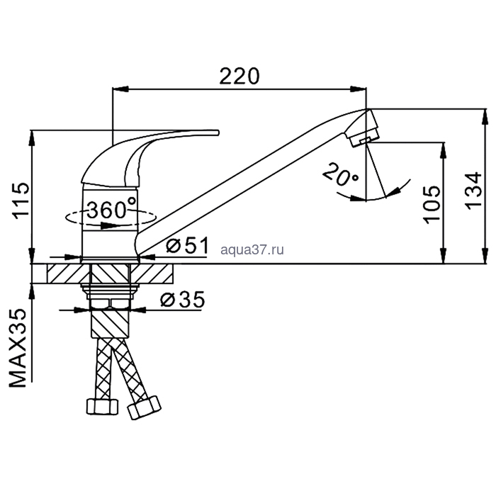 Гибкая подводка: М10*1 - Г1/2" 45см