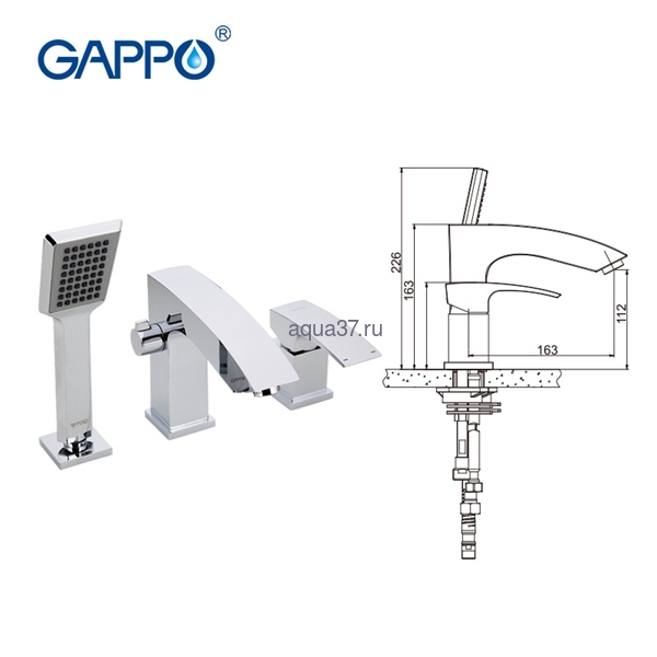 Смеситель для ванны на 3 отверстия Gappo G1107